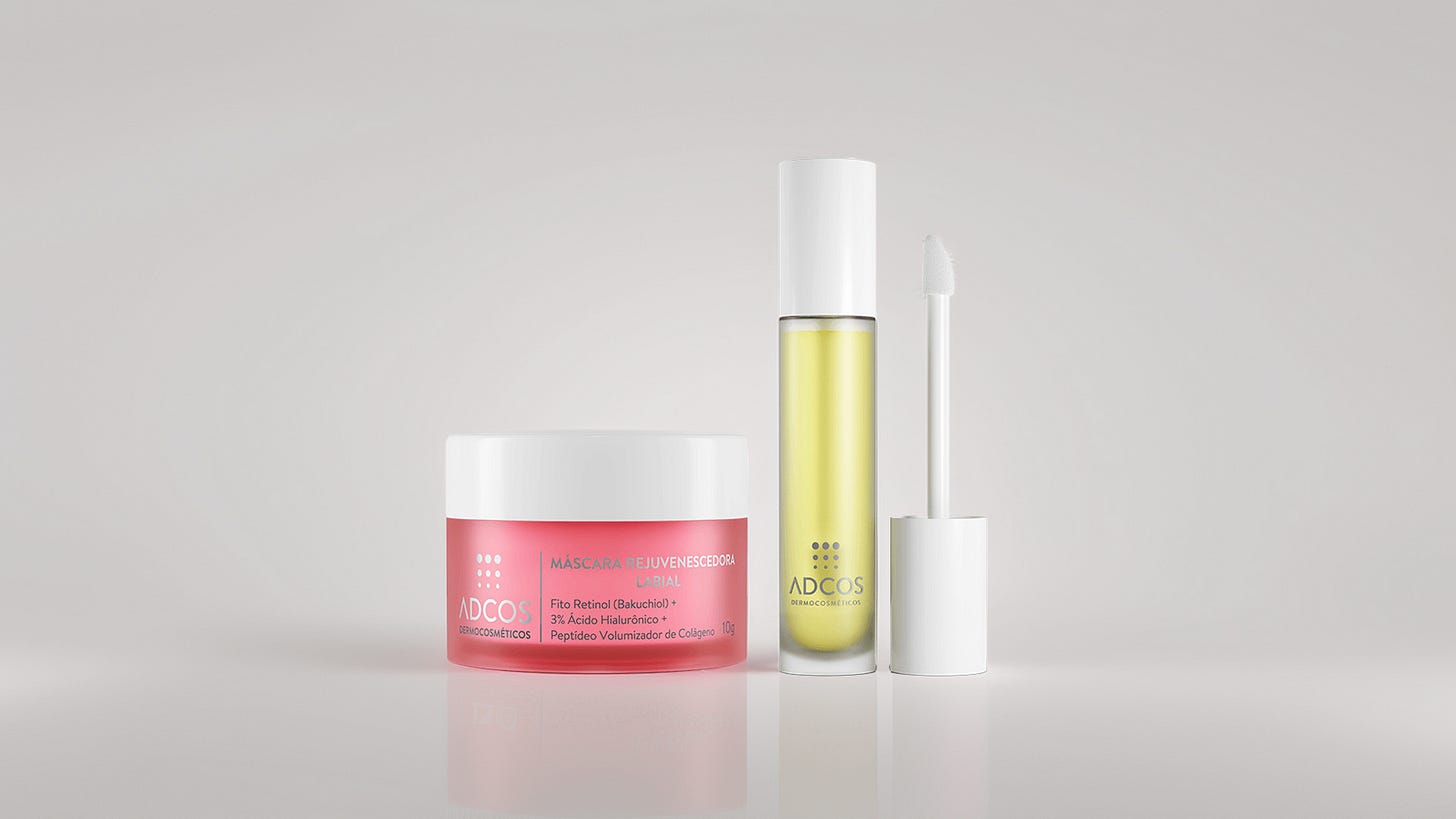 Os produtos estão disponíveis em todas as lojas ADCOS, no e-commerce da marca e principais redes de farmácia. O Sérum Volumizador Labial terá o valor de R$ 189,00 e a Máscara Rejuvenescedora Labial R$ 189,00.
