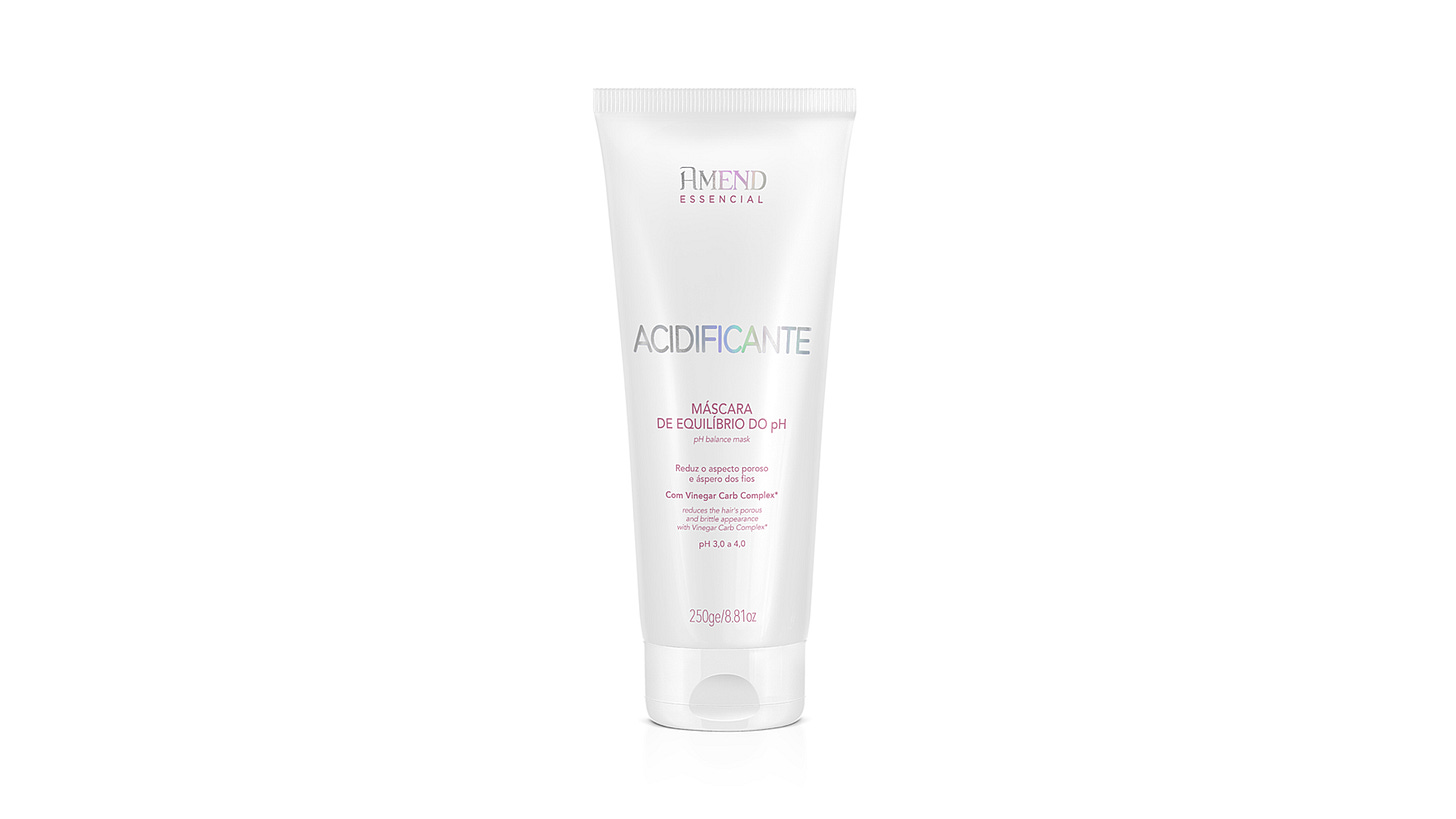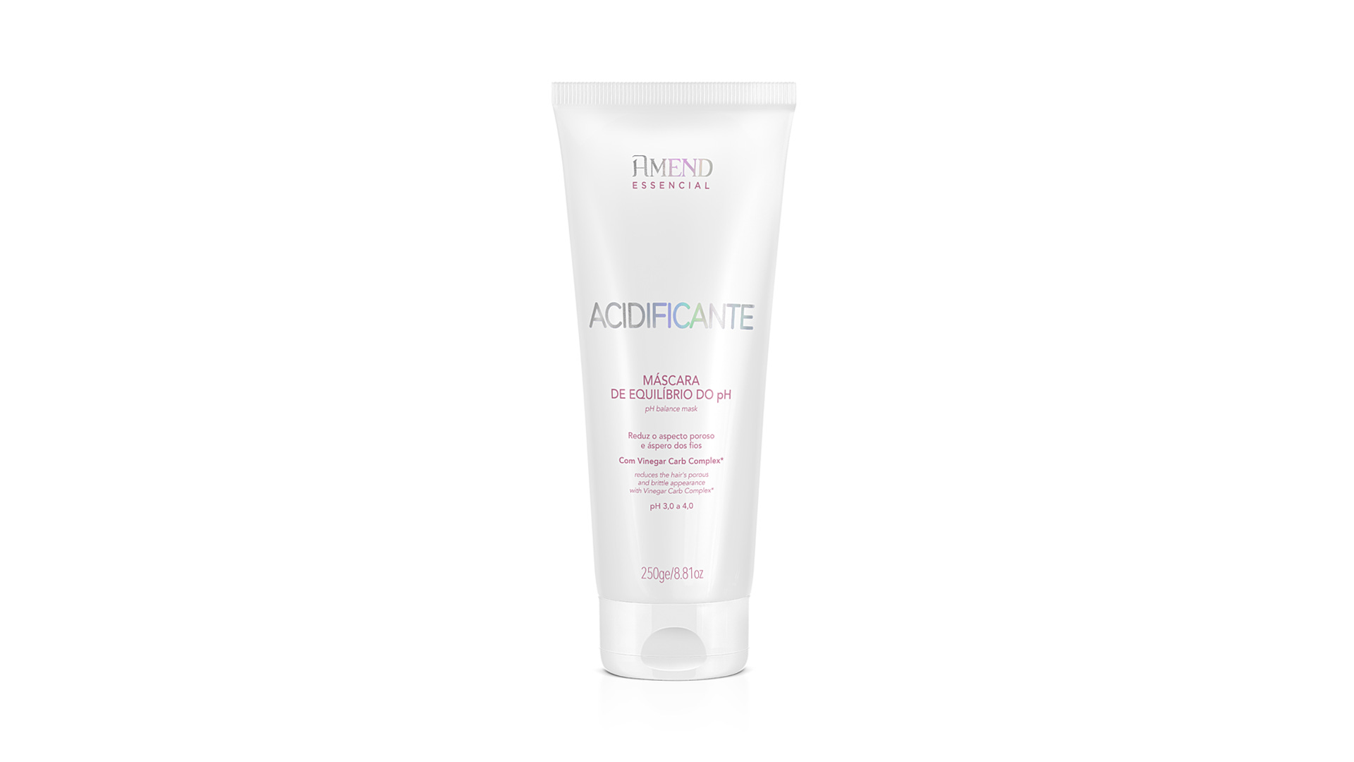 A Amend, marca referência em cuidados capilares, amplia sua linha Amend Essencial com o lançamento do primeiro acidificante capilar do portfólio. O Essencial Acidificante reequilibra o pH da fibra capilar e sela as cutículas, além de reduzir o frizz e o aspecto poroso, devolvendo a hidratação e trazendo mais saúde e vitalidade aos fios. A máscara foi desenvolvida especialmente para o cuidado de cabelos porosos, ásperos e desidratados que foram expostos a fontes de calor - como secador e chapinha - ou que passaram por processos de transformação, como descoloração, coloração ou alisamentos. Ele também é recomendado para cabelos cacheados, que, naturalmente, são mais suscetíveis ao ressecamento.