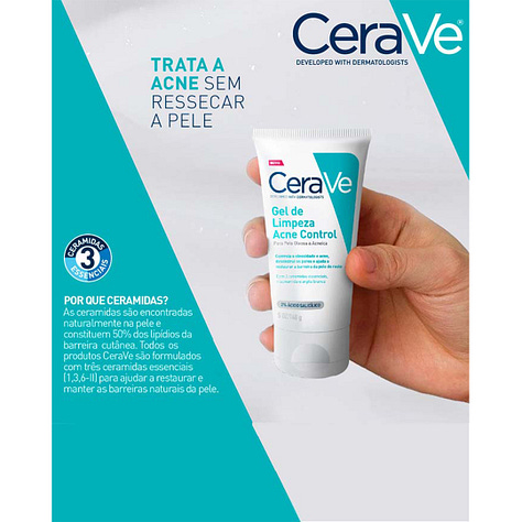 A novidade, livre de fragrâncias, corantes e álcool, tem em sua composição argila dermatológica purificante que absorve e elimina oleosidade e impurezas imediatamente, enquanto o ácido salicílico controla a produção de sebo e estimula a renovação da pele. Já a niacinamida tem ação anti-inflamatória e promove ação calmante imediata. As três ceramidas essenciais atuam na restauração e manutenção da barreira da pele, contribuindo para diminuir processos inflamatórios e a saída de água de maneira desordenada, deixando a pele mais saudável, hidratada e sem a sensação de repuxamento. Além disso, o CeraVe Gel de Limpeza Acne Control, limpa de maneira eficaz, sem danificar a pele.