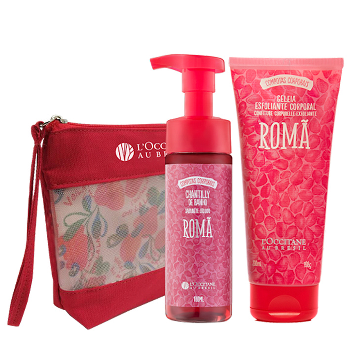 Combo Romã: Chantilly de Banho, Geleia Esfoliante + Necessaire | R$ 156,70