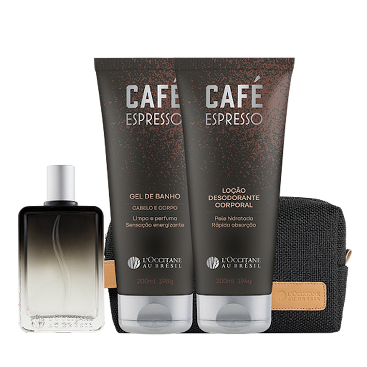 Loção Desodorante Corporal Café Espresso 200ml: Inspirada na sofisticada fragrância de Café Espresso, esta Loção Desodorante Corporal, promove uma hidratação por até 24 horas sem grudar nos pelos. Fácil de espalhar, ela reduz o aspecto áspero e esbranquiçado da pele, além de possuir textura leve de rápida absorção, que deixa a pele perfumada, macia e com toque aveludado. Contém óleo de Café Verde.