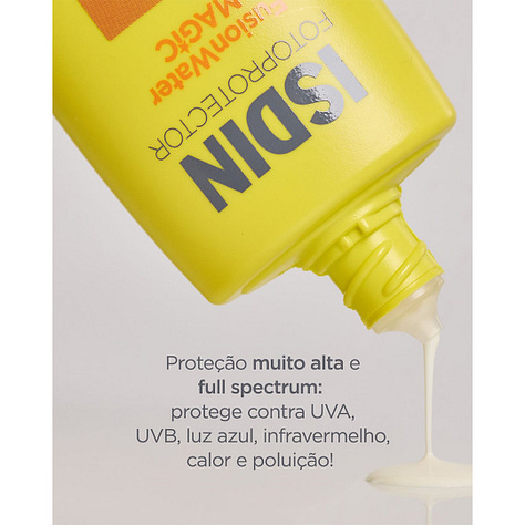 Fusion Water Magic Alcaraz possui proteção Full Spectrum, protegendo a pele contra os raios UVA, UVB, estresse oxidativo, contra o calor e poluição, sendo um protetor solar completo e para qualquer momento.