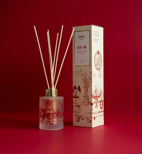 Com o nome de 25.12, a coleção natalina é formada por quatro produtos: Sabonete Líquido, Difusor, Vela Perfumada e Kit com Sabonete e Difusor. Os frascos e embalagens foram ilustrados pela artista Isabela Bueno, onde ela apresenta objetos e peças que narram histórias de lares preparados para celebrar as festas de fim de ano. A ilustração da edição de Natal de 2024 é carregada de significados e emoções que passam de geração para geração.