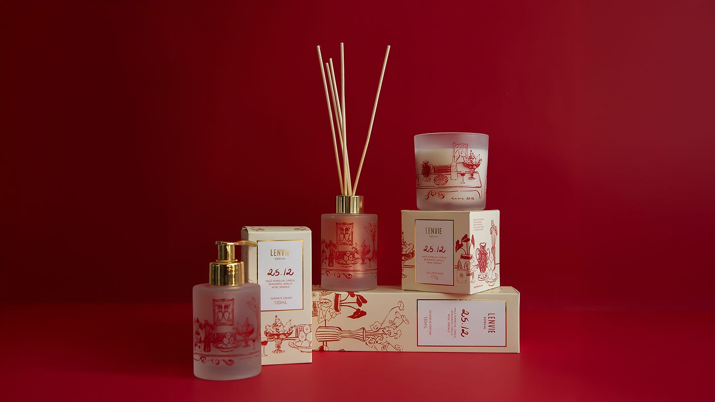 Com este lançamento, LENVIE busca participar da época mais mágica do ano, e se fazer presente na casa de seus clientes de maneira perfumada e aconchegante – seja através de um presente especial ou até preparando sua casa para receber a família.