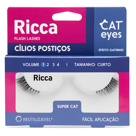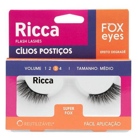 As novidades no portfólio de cílios postiços da Ricca realçam o canto externo dos olhos, enquanto a linha Fox Eyes apresenta 6 modelos que mudam o visual a partir do meio da pálpebra graças ao design em degradê, a linha Cat Eyes possui 4 modelos que realçam a parte final dos cílios, dando um efeito de volume similar a uma máscara de cílios.